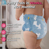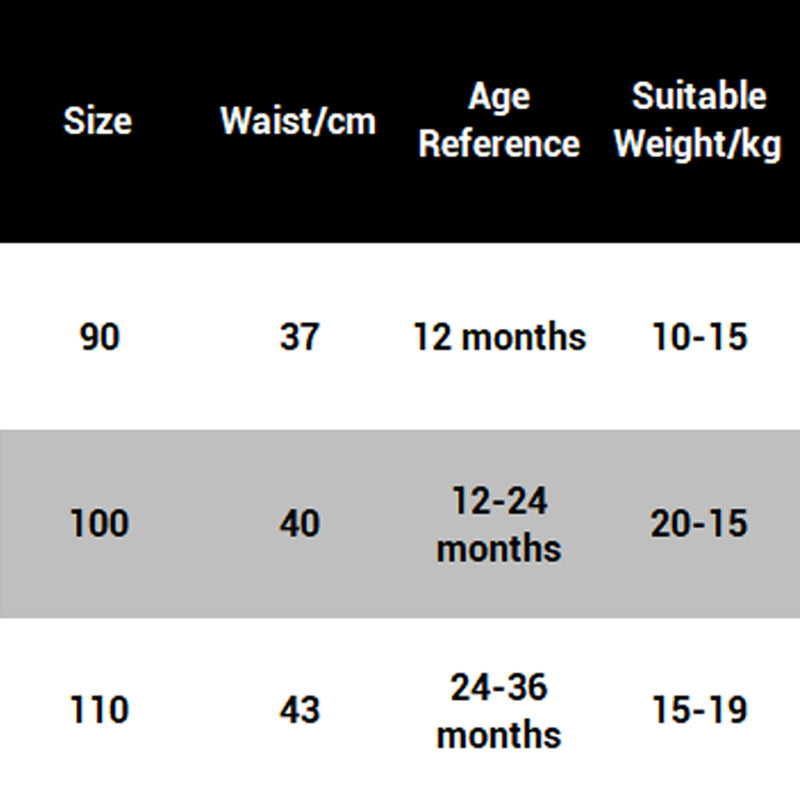 ÁTMENETEZÉSRE KÉSZ TERVEZÉS: Ezek a tréningnadrágok tökéletes középső lépést jelentenek a pelenkák és az alsóneműk között. Nedves állapotban az anyag elég kellemetlen érzést biztosít ahhoz, hogy ösztönözze a bilire járást, de apró dudorokat tartalmaz, így segítve a kicsiket abban, hogy kapcsolatot teremtsenek a testjelzések és a WC-használat között.MÉRETTÁBLÁZAT