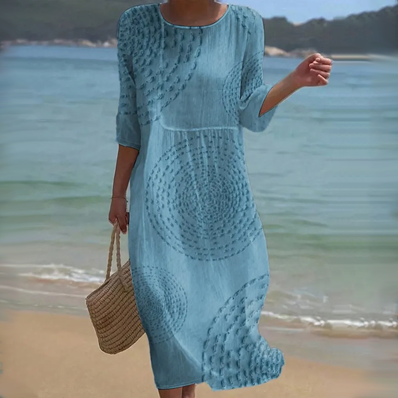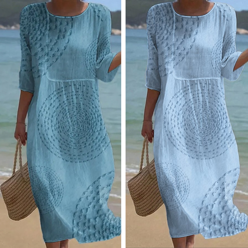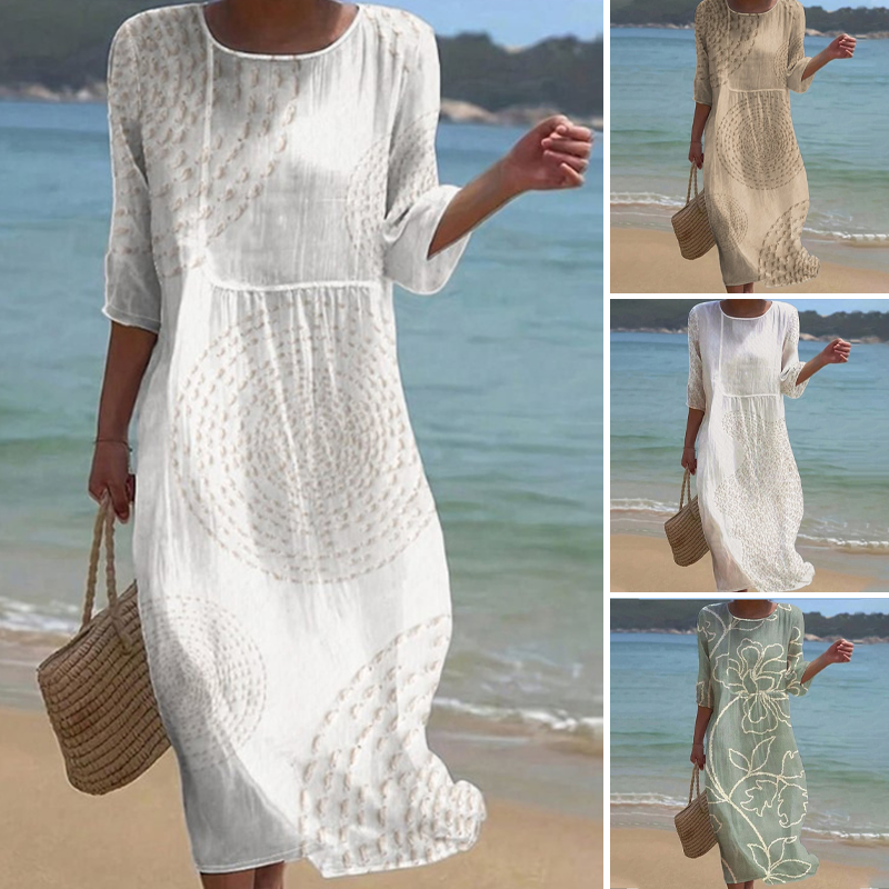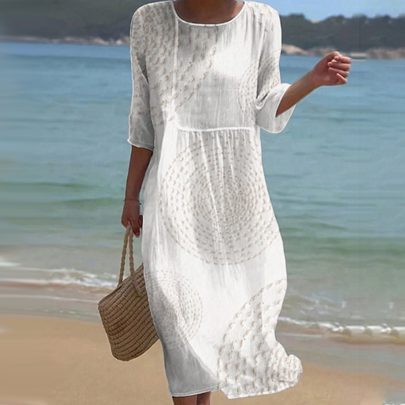 Tengerparti stĂlus : A laza, ĂĄramlĂł sziluett Ă©s a finom körkörös minta a tengerparti Ă©let laza csillogĂĄsĂĄt kölcsönzi ennek a ruhĂĄnak. A lĂ©gĂĄteresztĆ pamutkeverĂ©k anyag egĂ©sz napos kĂ©nyelmet biztosĂt, akĂĄr a tengerparton sĂ©tĂĄlsz, akĂĄr egy laza esti szĂłrakozĂĄst Ă©lvezel.