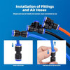 🛠️TELJES KÉSZLET – SOKOLDALÚ HASZNÁLATRA: Tartalmaz 1/4"-os elosztókat (splitter), könyököket (elbow), T-idomokat (tee) és egyenes csatlakozókat (straight) – lefedi a leggyakoribb 1/4" külső átmérőjű pneumatikus/nylon csövek csatlakozási igényeit különböző rendszerekben!