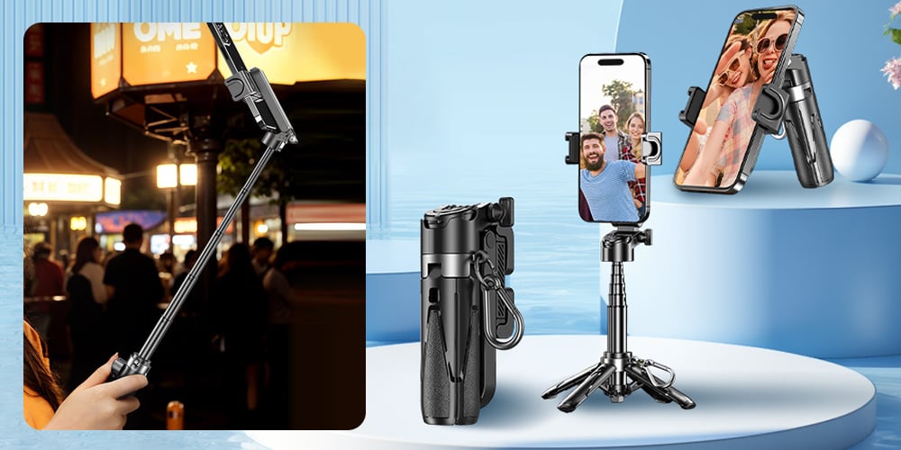 ÁLLÍTHATÓ 3-IN-1 KIALAKÍTÁS – Egy kompakt eszközben ötvözi a szelfibot, az állvány és a telefontartó funkciókat, ideális szelfik, élő közvetítések és csoportképek készítéséhez.
