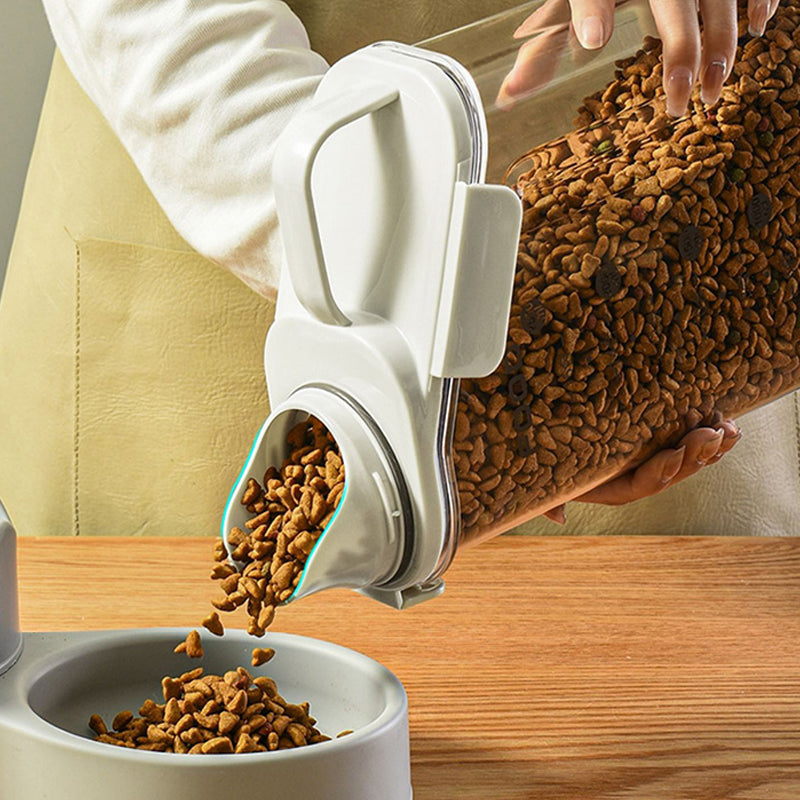 SZÉLES ÖNTŐNYÍLÁS ÉS MÉRŐPOHÁR - Hordozható élelmiszer-tároló edényünk szélesebb öntőnyílással rendelkezik, így az élelmiszerek könnyen kiönthetők, még akkor is, ha nagy darabokat tartalmaznak. (Más márkák öntőnyílásai kicsik, és elzárják a kutyaeledeleket vagy más nagy darabos élelmiszereket). Tartalmaz egy adagoló poharat, amely könnyen rácsavarható az öntőnyílásra, hogy élelmiszere friss és száraz maradjon.