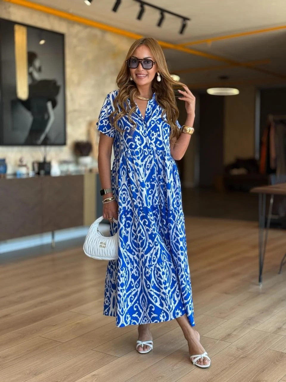 Ez a ruha élénk és kiegyensúlyozott nyomtatással egy kis személyiséget visz a mindennapi ruhatáradba. Az all-over minta vizuálisan érdekessé teszi a ruhát, így tökéletes alkalmi kirándulásokhoz, hétvégi kirándulásokhoz vagy kötetlen társasági eseményekhez.