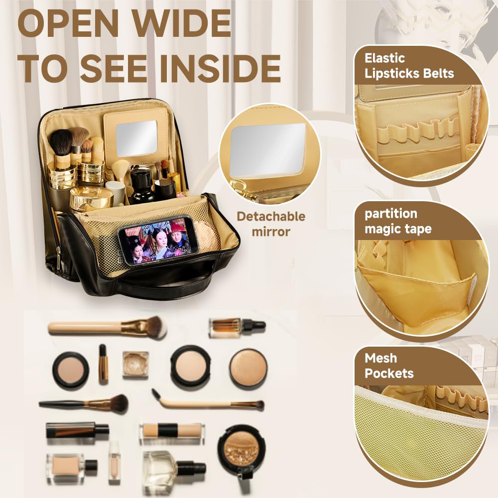 Kényelmes hozzáférés: A táska nagy nyílású kialakításának köszönhetően teljesen kinyitható és asztalra állítható, így minden tárgyad jól látható, és helyet tudsz kialakítani a telefonodnak. Használhatja sminkeléshez, miközben smink tutorialokat vagy szórakoztató videókat néz. Eltávolítható sminktükörrel is rendelkezik, így nem kell külön tükröt magával vinnie, és bármikor, bárhol igazíthatja sminkjét. Amikor indulásra kész, könnyen bezárható, ami nagyon kényelmes.