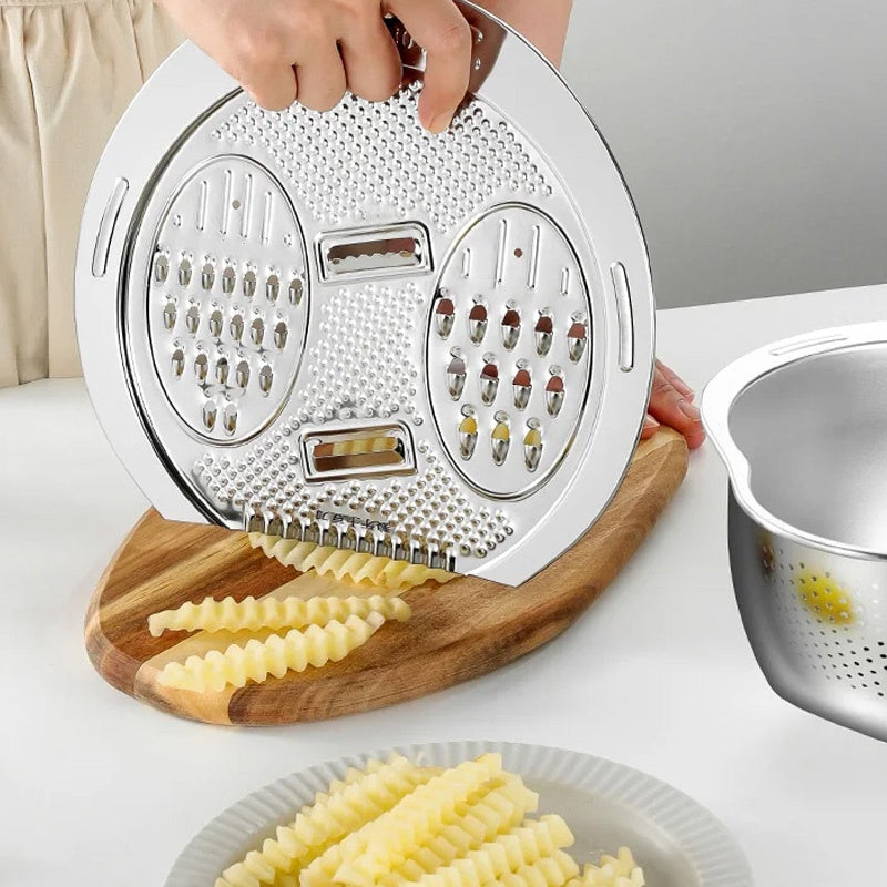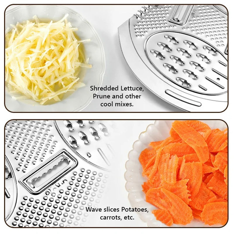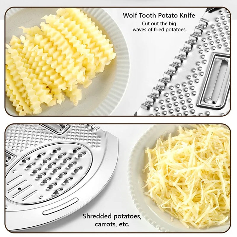 Az integrált vágási funkciók számos vágási lehetőséget kínálnak, beleértve a vastag csíkokat, vékony csíkokat, lapos szeleteket és hullámos szeleteket, így sokféle kulináris remekművet készíthet.