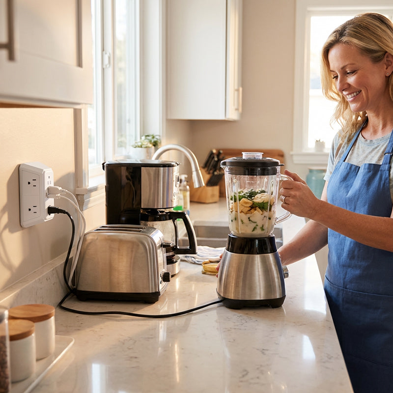 EGY GOMBOS FOĂVEZĂRLĂS â KĂ©nyelmes fĆkapcsolĂłval rendelkezik, amely egyetlen gombnyomĂĄssal vezĂ©rli az összes csatlakoztatott aljzatot Ă©s portot. Ez lehetĆvĂ© teszi, hogy könnyedĂ©n kapcsolja ki egyszerre az összes eszközt, energiĂĄt takarĂtva meg Ă©s növelve a biztonsĂĄgot.