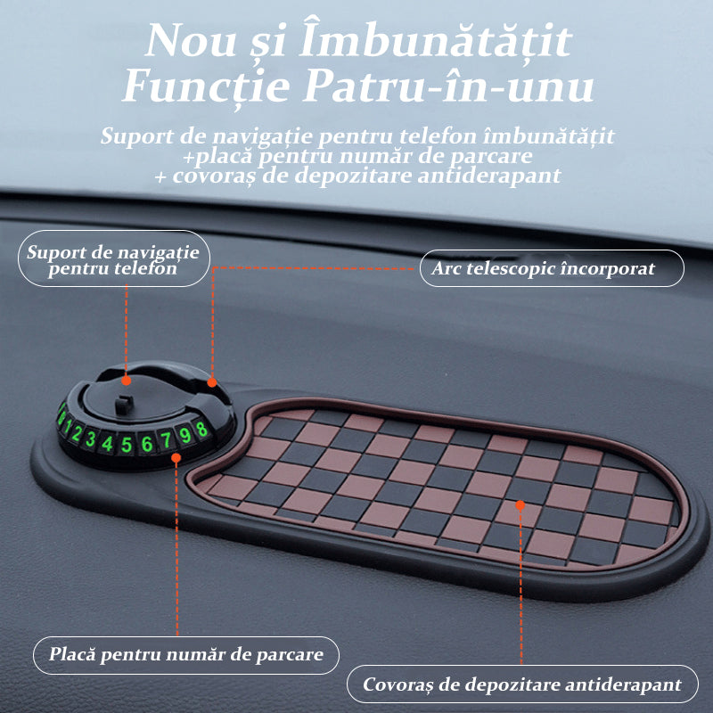 📱🚗 Többfunkciós műszerfal szőnyeg: telefontartó + ideiglenes rendszámtartó + szervezőtartó — csúszásmentes, tartós és biztonságosabb, könnyebb vezetés érdekében tervezve.