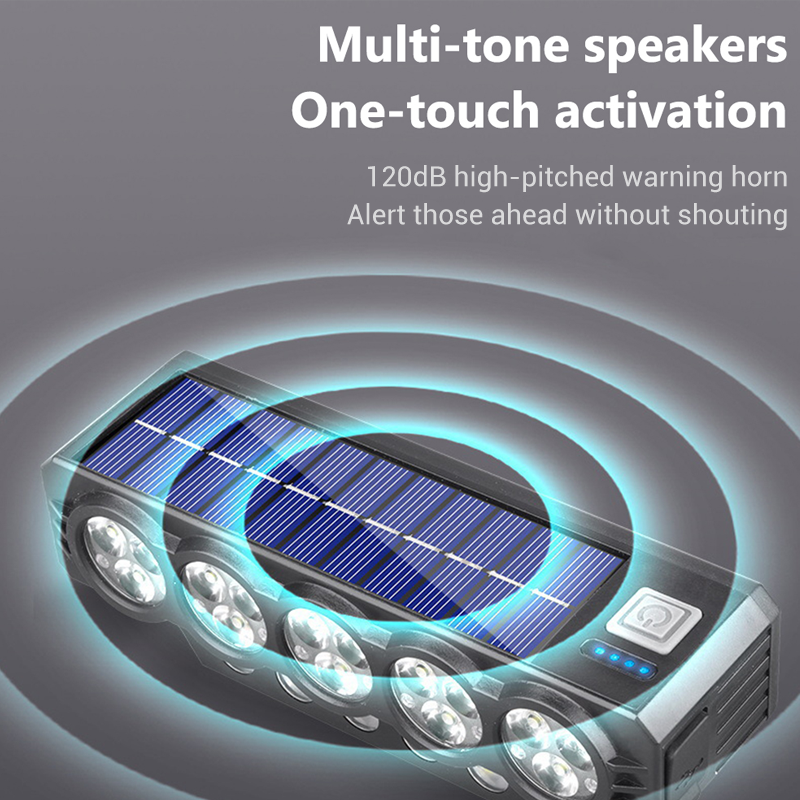 KÉT TÍPUSÚ TÖLTŐRENDSZER – A napelemes töltést gyors Type-C porttal kombinálja, így biztosítva, hogy a lámpa hosszú utakon is bekapcsolva maradjon, megbízható megvilágítást és nyugalmat biztosítva anélkül, hogy az akkumulátor élettartamáért kellene aggódni.