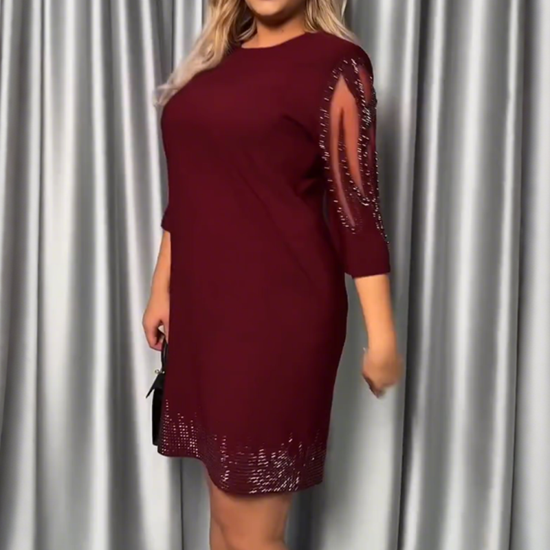 A hétnegyedes ujjú tüll csipke dizájnja drágakő elemeket tartalmaz a finom és figyelemfelkeltő részletek érdekében. Ez a gyönyörű részlet túlmutat az alkalmi viseleten.