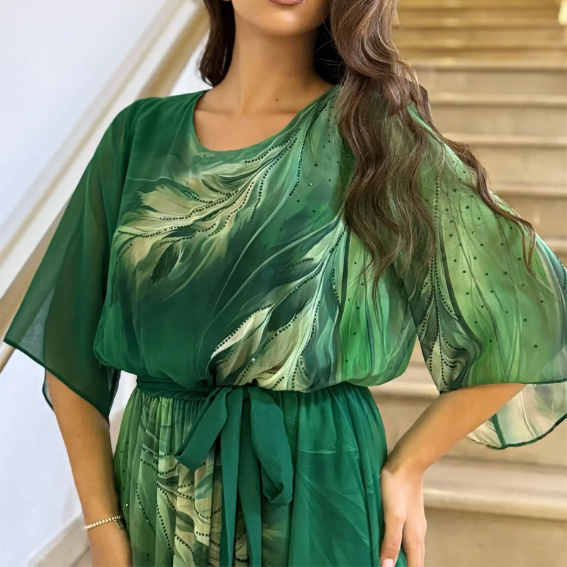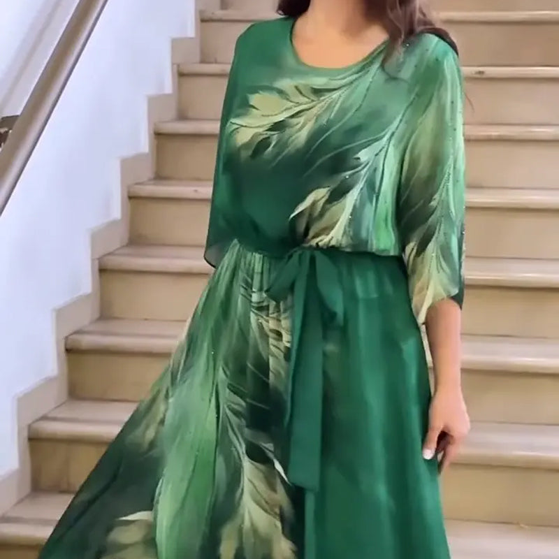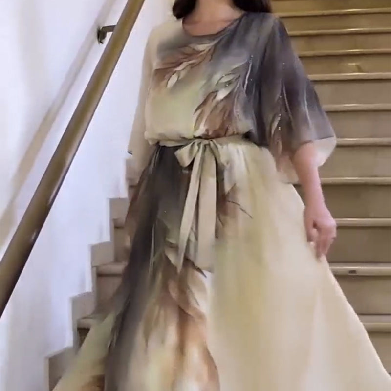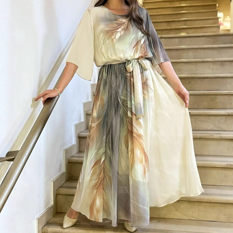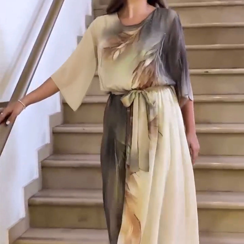 ELEGÁNS ÉS LENGŐS KIVITEL - Ez a kerek nyakú maxi ruha lengő sziluettel és egyedi, szabálytalan mintával büszkélkedhet, kifinomult eleganciát kölcsönözve mindennapi és ünnepi alkalmakra egyaránt. Könnyű anyagának köszönhetően egész napos kényelmet és stílust biztosít.