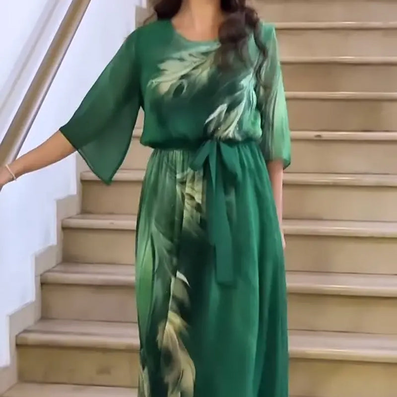 A csomag tartalma: 1×kerek nyakú, nyomtatott maxi ruha övvel