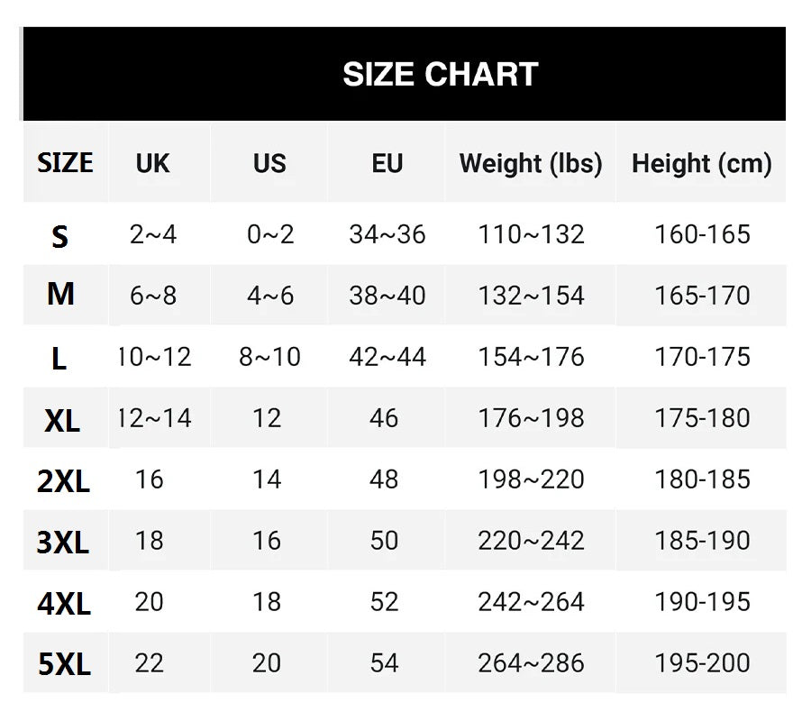 Méret: S, M, L, XL, 2XL, 3XL, 4XL, 5XL, 5XL