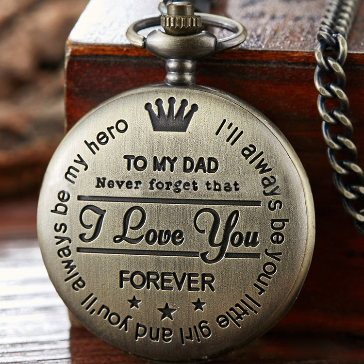 Emlékeztesse fiát, mennyire szereti őt ezzel a gyönyörű, lézergravírozott zsebórával. Ez a zsebóra az ideális ajándék, amelyet ő is igazán értékelni fog. Ezzel a gravírozott szuvenírrel örökre magával viheti a szeretetét...