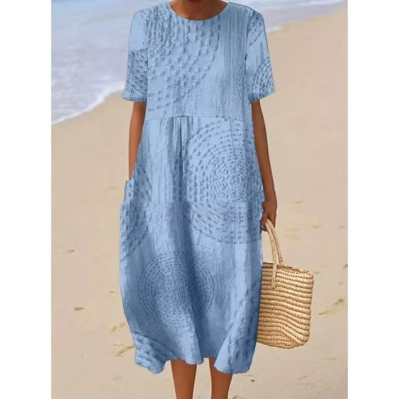 LAZA, LAZA SZABÁS: A kényelem érdekében tervezett midi ruha laza, laza szabású, könnyű mozgást és légáteresztő képességet biztosít, így tökéletes alkalmi, mindennapi viseletre.