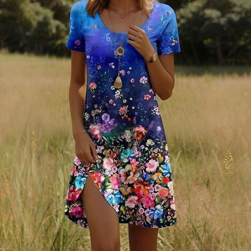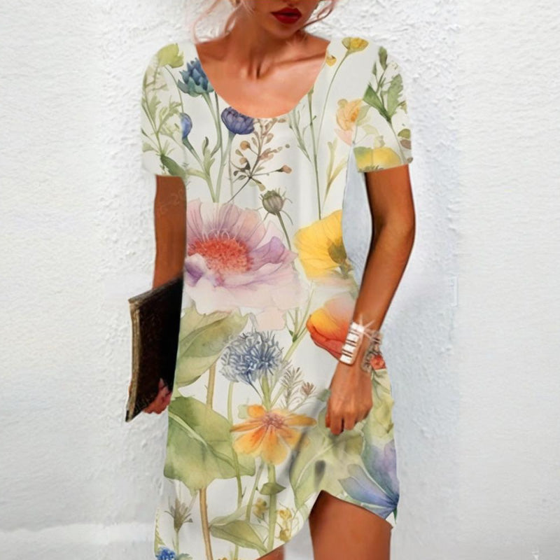 A TERMÉSZET SZÉPSÉGE MINDEN SZÖVEGBEN - Hagyja, hogy ez a ruha legyen a vászna - a vibráló virágok úgy virágoznak az anyagon, mint egy napsütötte kert. Minden egyes finom szirom és inda a nyár könnyed romantikáját sugározza, tökéletes piknikhez vagy naplementés koktélokhoz.