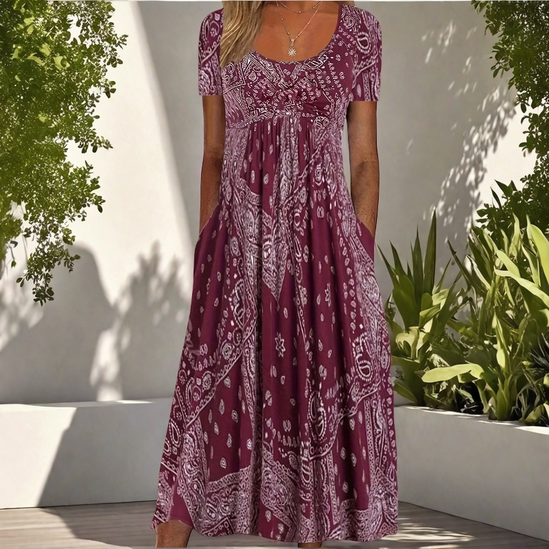 Szemet gyönyörködtető mintás design - Elegáns virágos és geometrikus minták keverékével díszített ruha, amely a művészet vászna, amely felkelti a figyelmet. Az élénk, mégis kifinomult dizájn könnyedén frissen és magával ragadóan tartja stílusát.