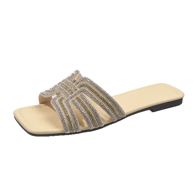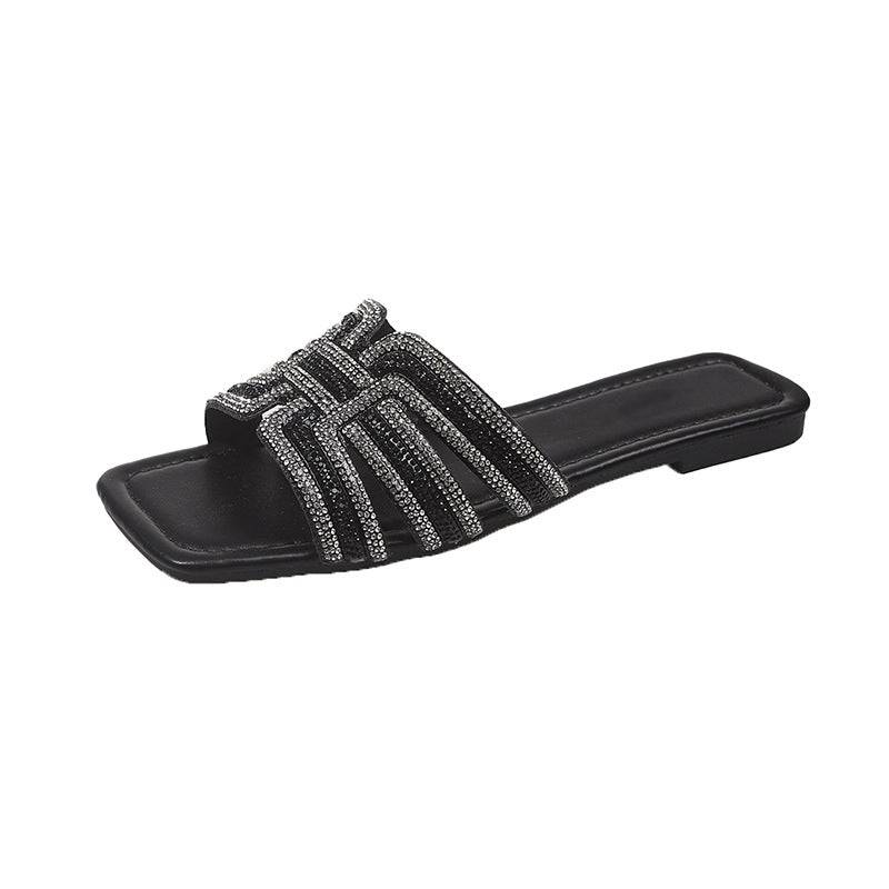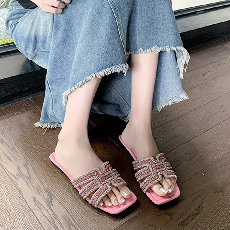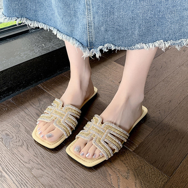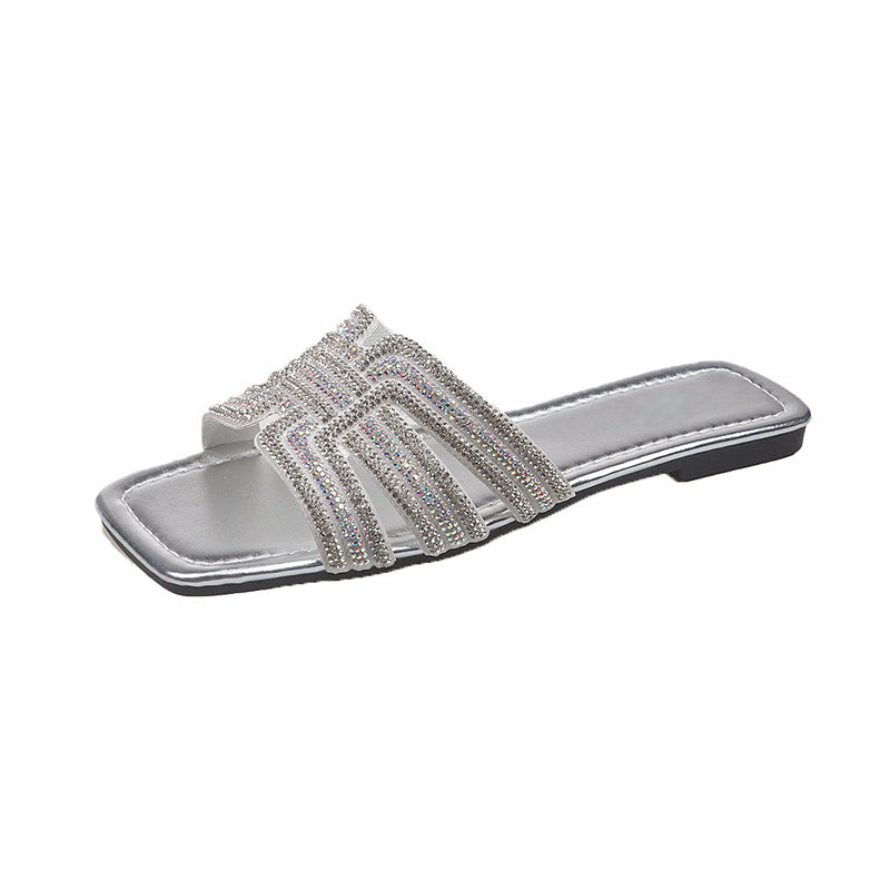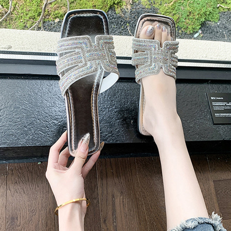 CSILLOGÓ STRASSZOS PÁNT – Geometrikus, H alakú pánttal, amelyet bőségesen díszítenek csillogó strasszok. Ez a szemet gyönyörködtető részlet egy kis csillogást kölcsönöz a szandálnak, így az tökéletesen illik bármilyen alkalmi vagy félformális öltözékhez.